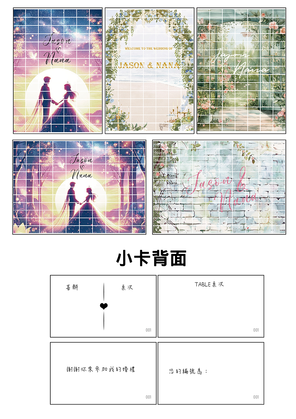 💖賓客小卡背面不僅能印桌次、喜餅號,甚至可以客製成抽獎卷號碼或給賓客想說的話。