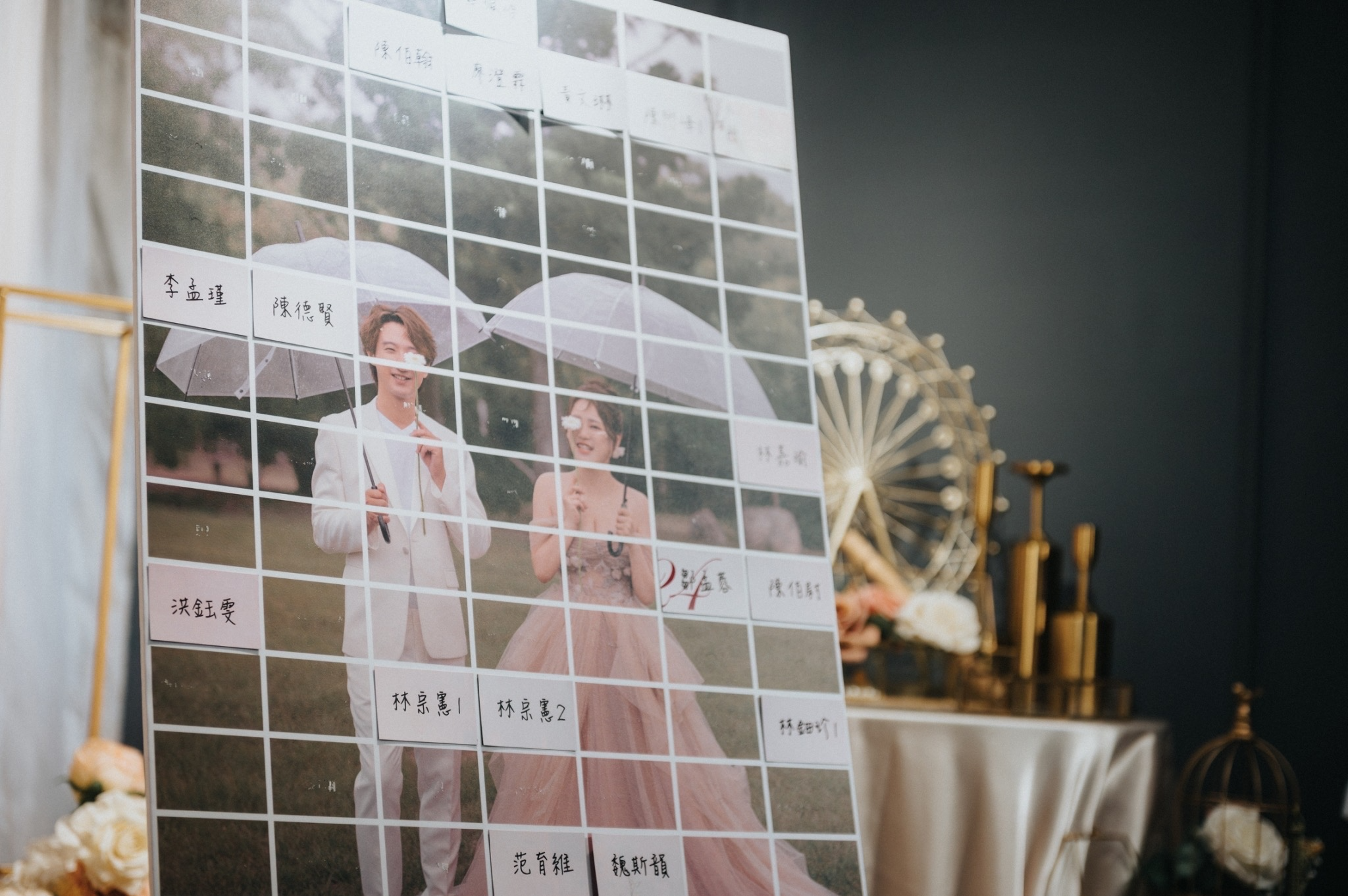 1️⃣在A1婚紗照珍珠板,前面貼上為每位賓客準備小卡(賓客小卡)
