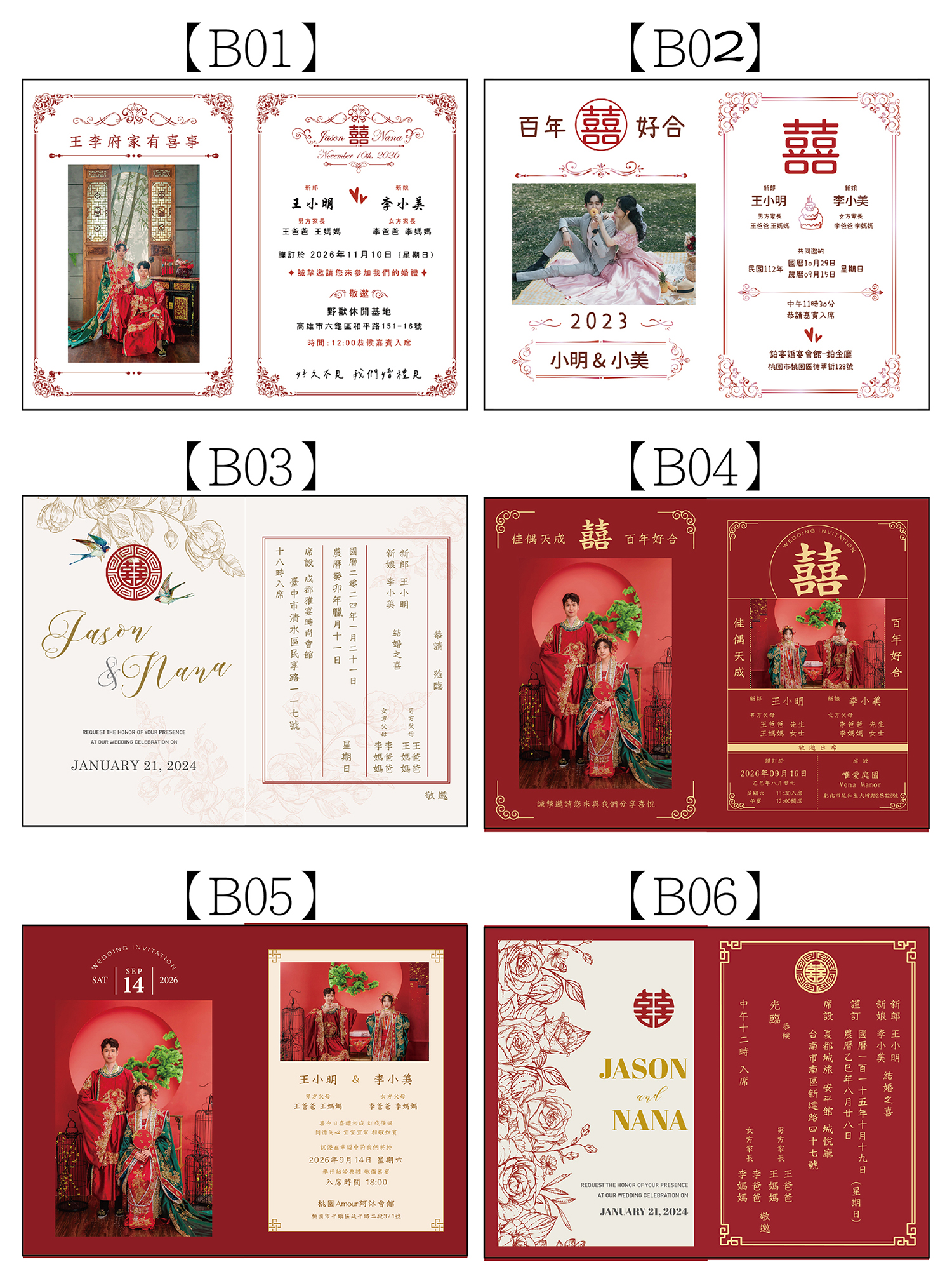 一組喜帖含: